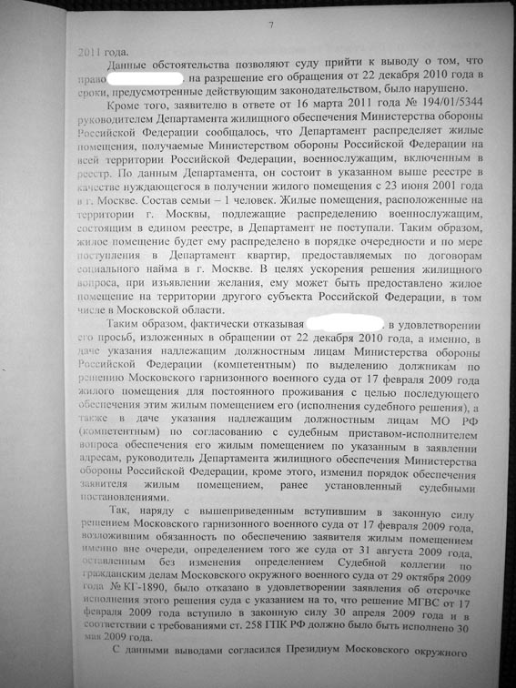 #822если Вам предлагают извещением другой регион, то это только предложение, а не "обязаловка", и суд не усмотрит правонарушения. А вот то, что Вам предлагают дважды "однушку", говорит о нарушении в учете Ваших данных в ДЖО (что у Вас написано в реестре касаемо состава семьи и места обеспечения?). Увязывайте оба факта, обращайтесь в суд с заявлением, по извещениям суд откажет, а вот учет обязует привести к избранному месту и количеству членов семьи. Глядишь в суд с новым извещением и приедут?помогите советом кто нибудь встречал судебные решения в части того что ДЖО уже в моем случае присылает 2-ое извещение в ноябре и вот в мае все на Подольск на 1 комнатную хотя признан в Балашихе а мне положена 2-шка, есть ли шансы обязать ДЖО в обеспечении меня жил площадью на состав семьи из 3 человек? заранее благодарен)))