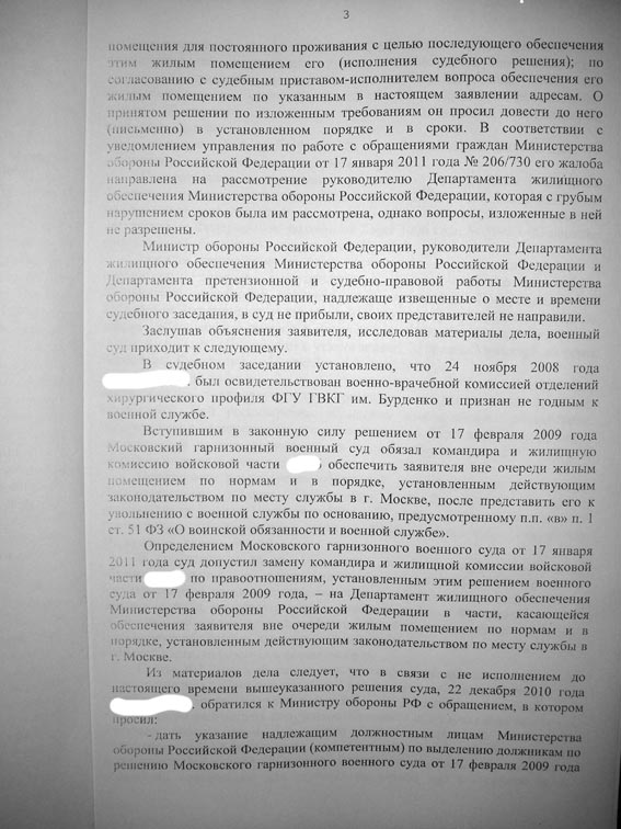 А также во исполнения указаний МО РФ от 4 июня 2010 года № 205/2/374 в Департамент представлены списки военнослужащих РВСН подлежащих обеспечению жилыми помещениями по договорам социального найма, в которых я учтен с 7 декабря 2010 года с составом семьи 3 человека как подлежащий обеспечению жильем посредством оформления и реализации государственного жилищного сертификата в г. Санкт-Петербург.