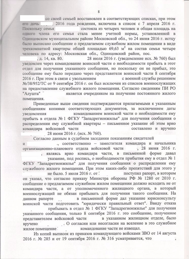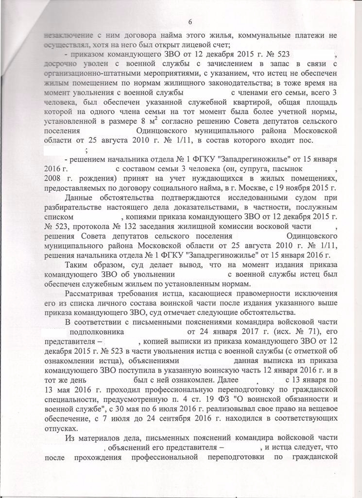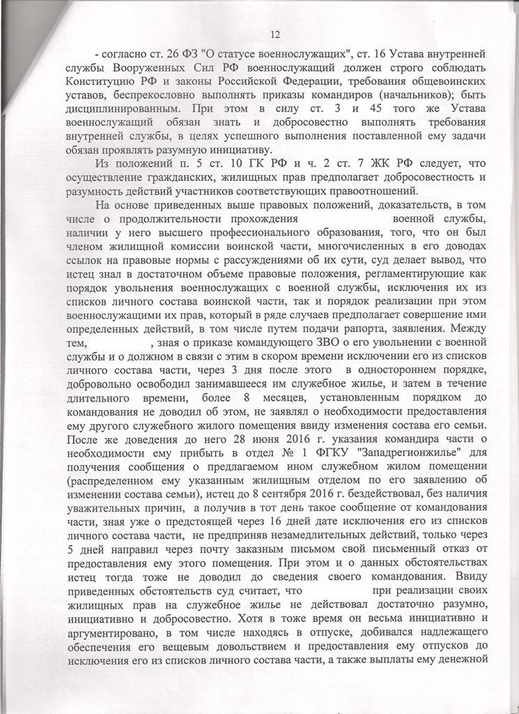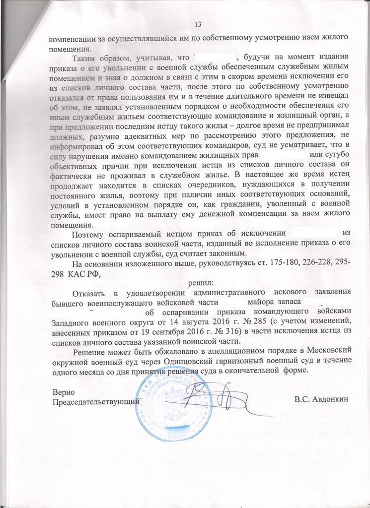 У меня, исходя из решения ГВС по оспариванию приказа по л/с, фактическое обеспечение на момент издания приказа по л/с, но до ИСЧ состав семьи изменился, и поэтому даже "фактическая обеспеченность" уже менее учётной нормы. Да и вообще, с января 2016 г. (приказ по л/с от декабря 2015 г., решение ГВС от ма 2016 г.) в этом ЖП не проживаю. ГВС по ИСЧ сказал, что приказ об увольнении законен, а приказ об ИСЧ издан во исполнении него т.к. вообще в течении месяца меня обязаны были ИСЧ. Сейчас подредактирую решение и выложу, посмеётесь от души.QR_BBPOST Подпункт «б» пункта 2 статьи 13