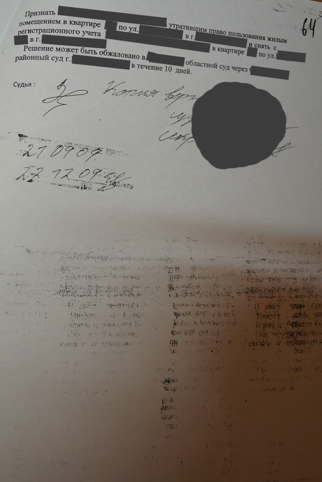 Зачем использовать решение суда в качестве справки, если в качестве справки выдана справка установленной формы с пометкой "оставил бывшим родственникам" - раз.