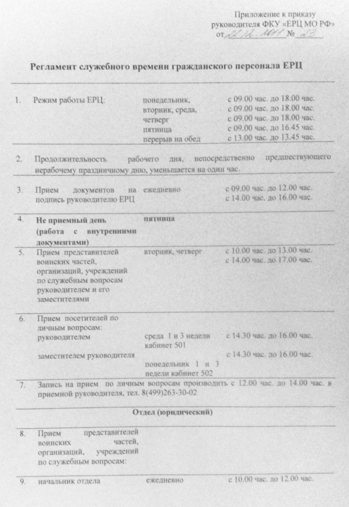 Выкладываю "внутренние" инструкции и "указивки" ЕРЦ по "работе" с военными и гражданским персоналом МО РФ, а так же по порядку исполнения решений судов, ну и сам РЕГЛАМЕНТ служебного времени ЕРЦ - вдруг кто то захочет Лощенкову навестить....