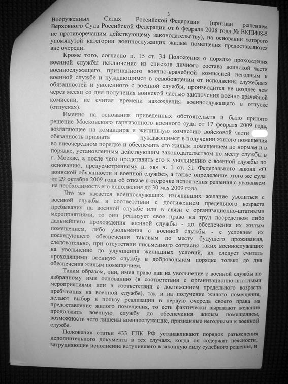 Здравствуйте! Думал, что всё уже закончилось, уже год как уволен. Суд, касация, решение суда: признать заявление обоснованным и подлежащим удовлетворению частично: обязать командира войсковой части обеспечить заявителя не выданными предметами вещевого имущества, положенными ему по норме снабжения.