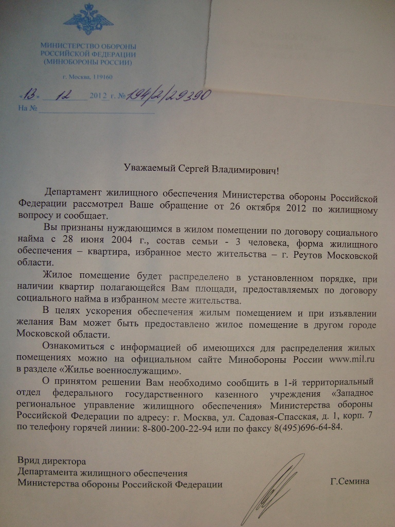 законодательство, которые позволили бы Министерству обороны, в частности, и другим силовым ведомствам ввести ещё одну систему обеспечения жильём - единовременные денежные выплаты. Мы довольно детально обсудили параметры этого закона, параметры цены за 1 кв. м, добавочные коэффициенты за выслугу лет (в зависимости от того, сколько офицер прослужил) и состав семьи. Все наши предложения приняты, и сейчас мы будем заканчивать проработку с Министерством финансов, министерствами экономического развития и регионального развития. Я думаю, что в ближайшее время, до конца сентября, на Правительстве этот вопрос будет рассмотрен и внесён уже в виде законопроекта в октябре на рассмотрение в Государственную Думу.