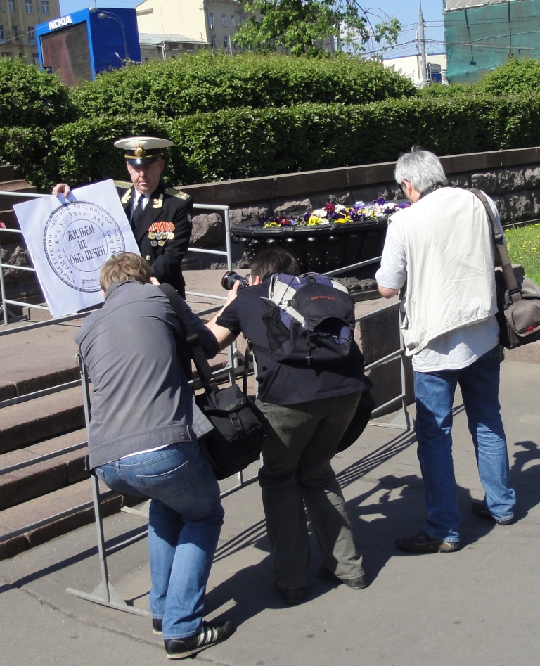 Если не ошибаюсь, это был СЭВ. О митинге коротко, наскоро, уж сообщили. Сам стоял в первой шеренге, рядом с Петровичем 71, испытывал весьма широкую гамму чувств, от ненависти к руководству МО и выше, от презрения к "овощам", носящим погоны, от стыда за то, что не оправдались надежды на активность и массовость "братьев по оружию" до сильнейшего уважения и, даже, человеческой симпатии к организаторам и участникам митинга. Спасибо Вадко 1, Десантуре, V sudу, Львовне, СЭВу, Алексею Новикову, всем принимавшим участие в подготовке, участвовавшим и выступавшим.И еще был человек с общаги на Большой Пироговской. После выступления побежал смотреть - не отключили ли им там коммуникации - свет газ воду и т.д.