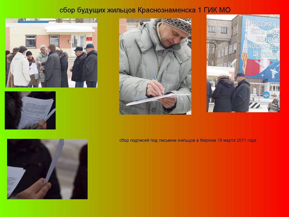 подписание письма началось в фойе ГДО, кто хотел, тот подписал. Таких было больше, чем народа перед зданием ГИКа. В письме про ДСН ни слова. Так что про вселение "по кривому" речи нет. все за ДСН (моя семья 8-ю руками)!!! Лишь-бы краснознаменцы не подкачали.