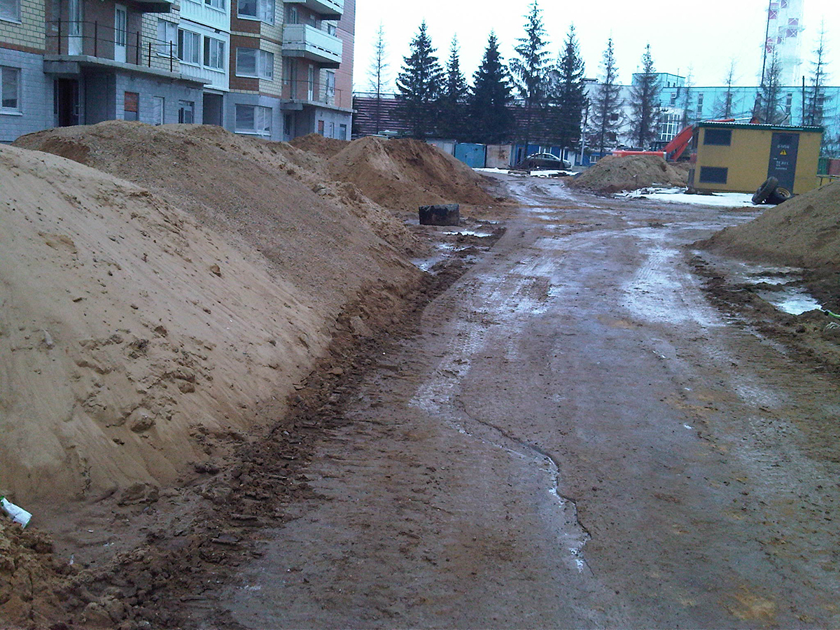 Не сезон!(до апреля- мая)ИМХО.Для внутренней отделки-рано(нет отопления),для улицы(дороги и дворовые территории)- тоже(грязь),коммуникации(трубы,электрика), внутренние и внешние-самое время, чтобы своевременно сделать остальное!С прошлого года там не был, кое-что сделано, шевеления возле колодцев с коммуникациями идут, может в каких-нибудь корпусах внутри работают. Рядом коммерческие стройки ощущение от них похожее.