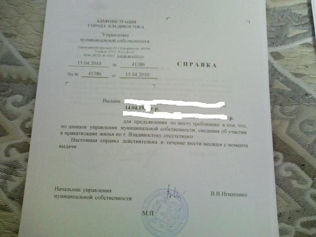 прав. Вам на Партизанский. Без этой справки увы - никак. В чем смыл? Допустим, Вы или Ваша супруга участвовали в приватизации квартиры родителей (в которой проживали по прописке) в г. Владивосток в период с 1998 по 2001 год (до Камчатки), но собственность на квартиру не зарегистрировали в ФРС. В этом случае по БТИ (до 1998 г.) - Вы и Ваша жена - БЕСКВАРТИРНЫЕ (собственности не имеете, в приватизации не участвовали), в ФРС (с 1998 г.) по 2001 г. - ПРАВ СОБСТВЕННОСТИ на тер. Вл-ка и Пр. края НЕ ЗАРЕГИСТРИРОВАНО. Реально, приватизировав квартиру (долю) в период с 1998 г. по 2001 г. Вы скрываете использованное Вами право приватизации. После получения жилья в СП, имеете возможность зарегистрировать право на приватизированную ранее (1998 - 2001) квартиру и таким образом наипать МО.