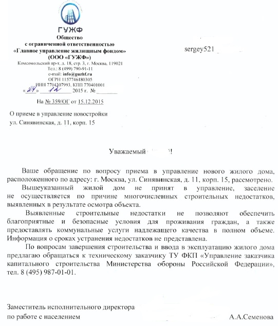 Зато как убедительно: выявленные строителные недостатки НЕ позволяют обеспечить благоприятные и безопасные условия для проживания граждан. Как заботятся о нашей безопасности! Что само собой похвально конечно. Пусть ГУОВ шевелится..QR_BBPOST Во всяком случае Новый год будем встречать в новых квартирах.