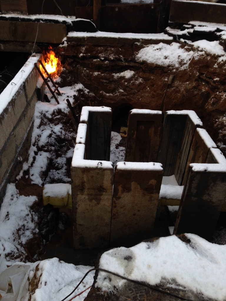 По БО. Осталось 30 метров прокладки труб отопления второго ЦТП. Врезались прошлый вторник в городскую тепло сеть . Проводятся работы по теплоизоляции труб, по окончании будут засыпать, планируют за неделю управиться. Паралельно проводятся работы по канализации домов 12 стр 2 и 3, работы еще много, 12 дом не начинали. Откопано место врезки холодной воды оно рядом с теплотрассой 2 ЦТП.