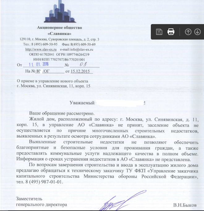 #22970По мне так лучше такой ответ и пусть устраняют недостатки чем как в Мытищи подписали с недостатками, а люди мучаютсяQR_BBPOST Сегодня снова получил ответ из Словянки: