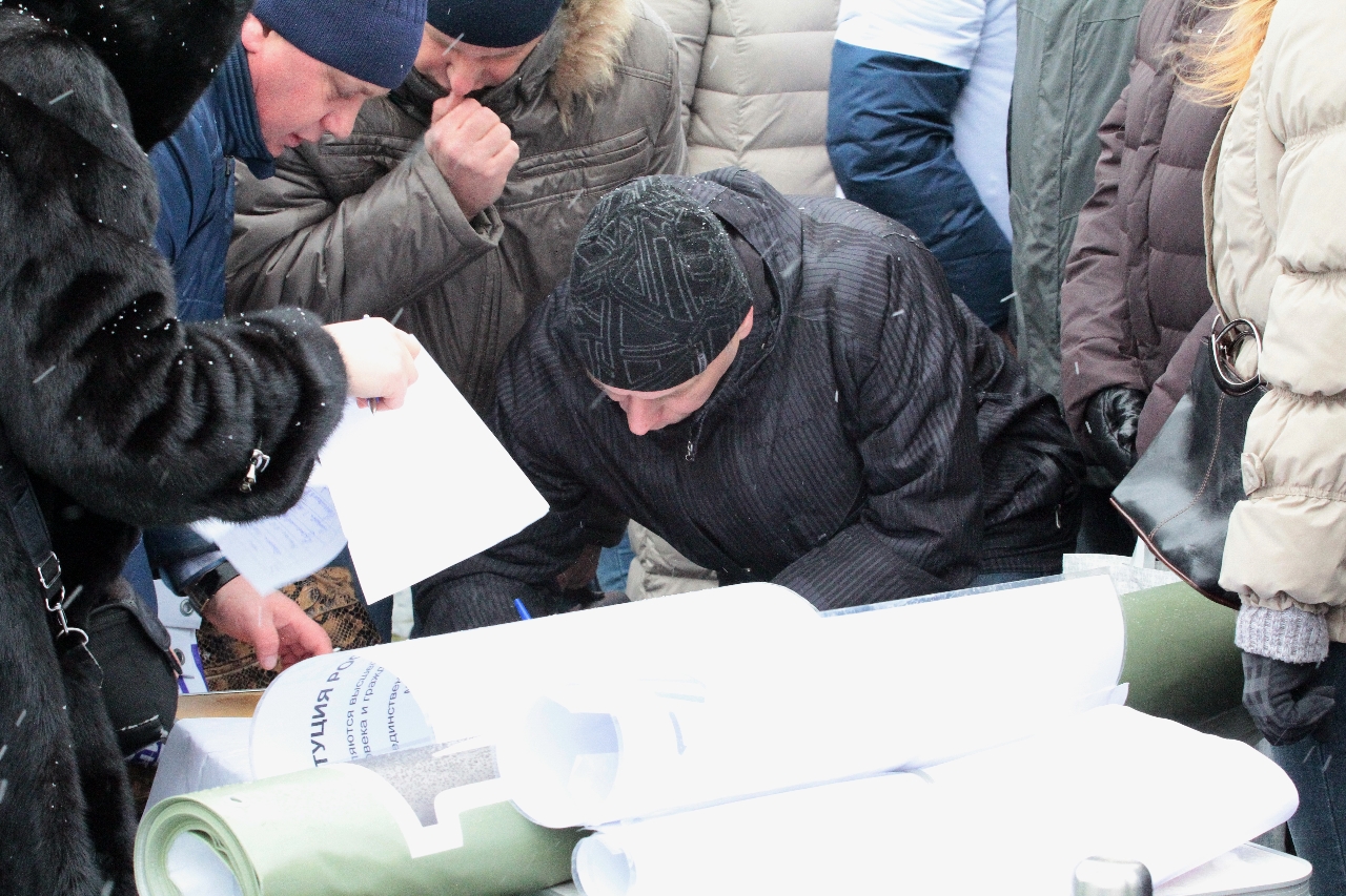 " Надо сказать, что самопровозглашенные «бомжи» выглядят довольно прилично. Среди участников митинга особенно выделялась женщина, одетая в норковую шубу. Жителя столицы норковой шубой не удивишь, но всё же странно видеть её на человеке, который считает себя «бездомным»