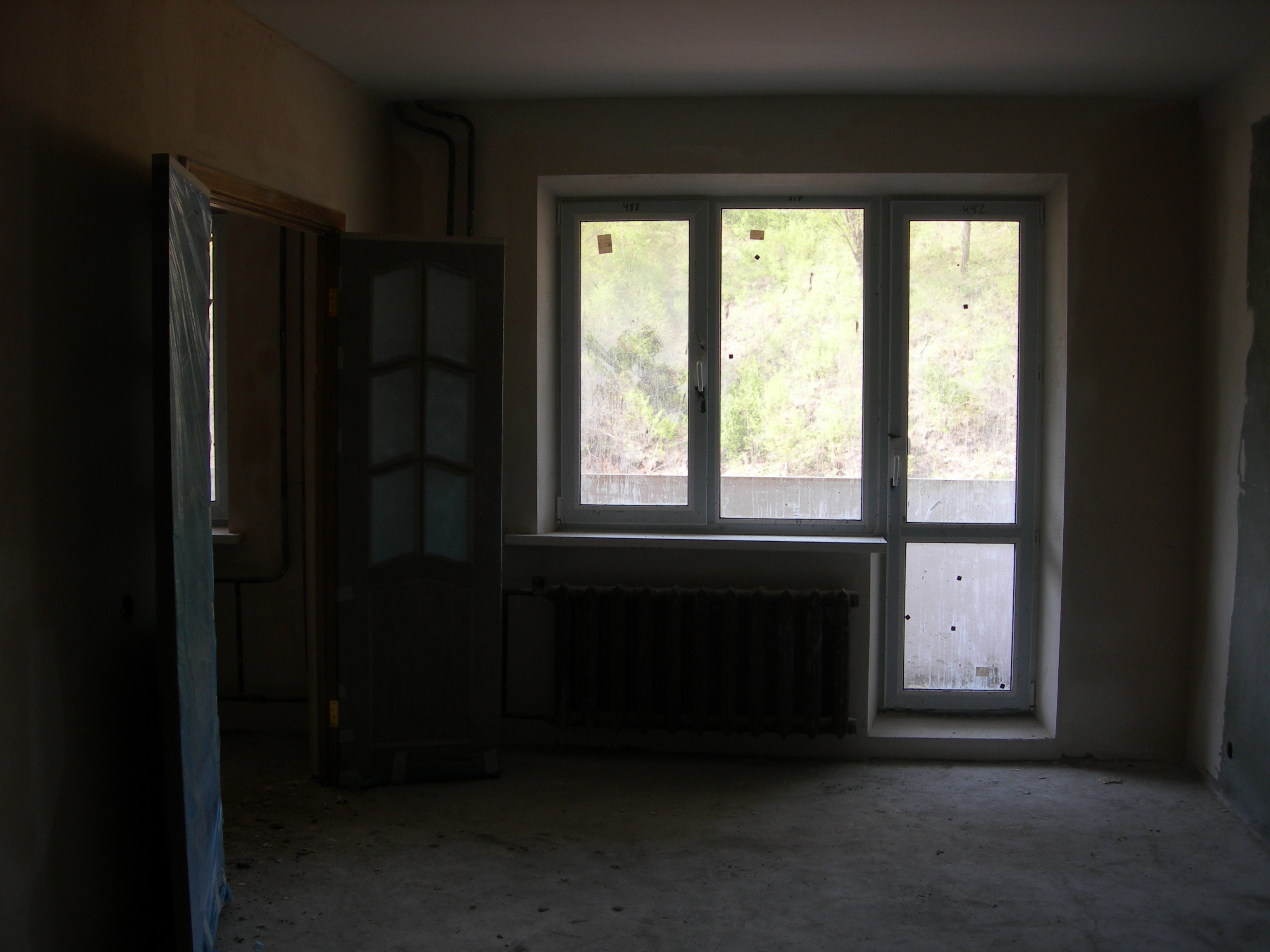 Въезд со стороны Автозаправки свободен! Никакого КП сейчас нет! Проехали прям до 34 дома! Но, к сожалению, по времени не успели и прораба уже не было - посмотрели квартиру, но свою только методом тыка! Поэтому точно не знаю нашу смотрели или нет... У нас двушка! Никаких обоев там еще нет, батареи чугуннные, комнаты мизерные, зато балкон во всю квартиру! Вообщем смотрите фото!