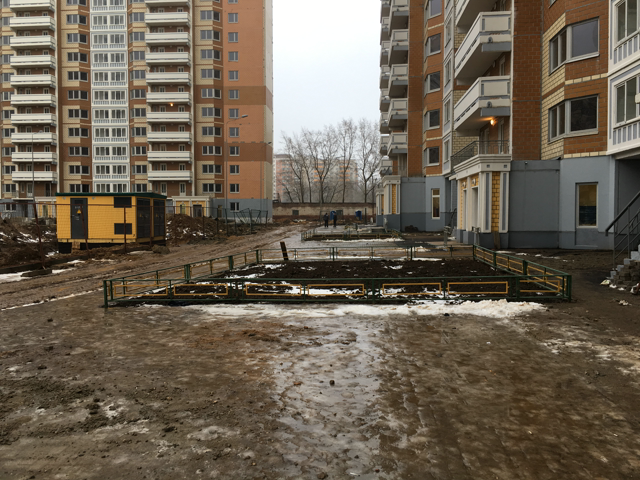 #45913Добрый вечер! Совсем хороших новостей нет. Вечерних-авралных работ на территории у 8к сегодня нет. Доп/освещение с площадки убрали, но что-то подсказывает, что с брусчаткой на этой стороне корпуса закончили - в темноте видны правильные контуры и если не показалось, то у 5го подъезда даже газоны зачернели (чернозем может завезли).