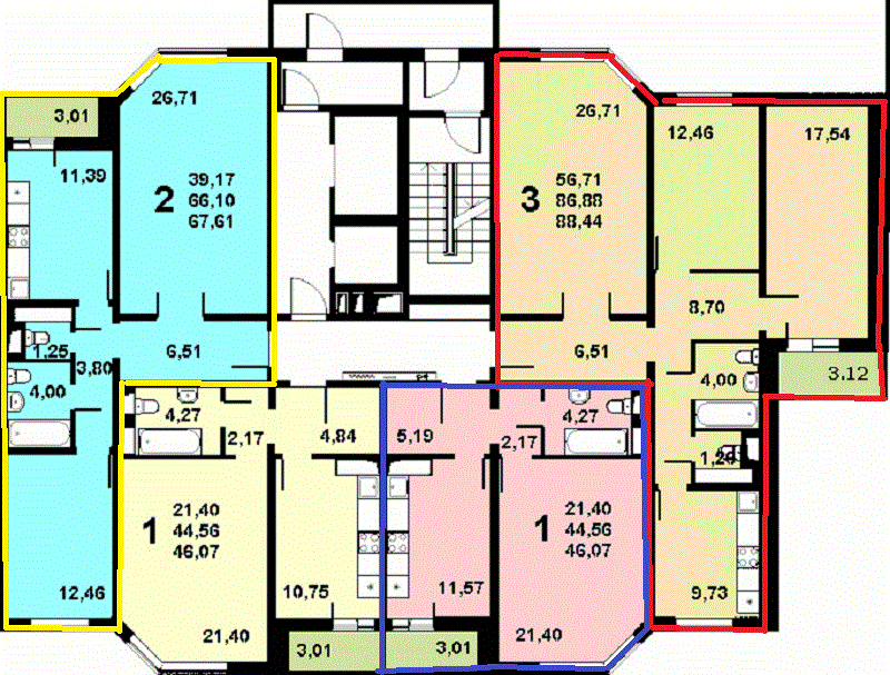 Да наружные стены действительно толще. Они еще и с утеплителем.Вот если посмотреть на план квартир , можно заметить , что внешние стены какие то толстые , оказывается , что это так и на деле. Трёшки , как нам объяснил рабочий, только в крайних подъездах. Естественно я поинтересовалась - не сильно ли холодно будет в угловых квартирах. На что он ответил, что в этих домах внешние стены ( простите не запомнила) из чего то там такого, короче они реально очень толстые и теплые. Так что уверяют что в этих домах тепло будет и в угловых квартирах.