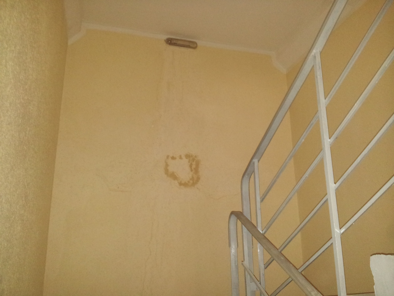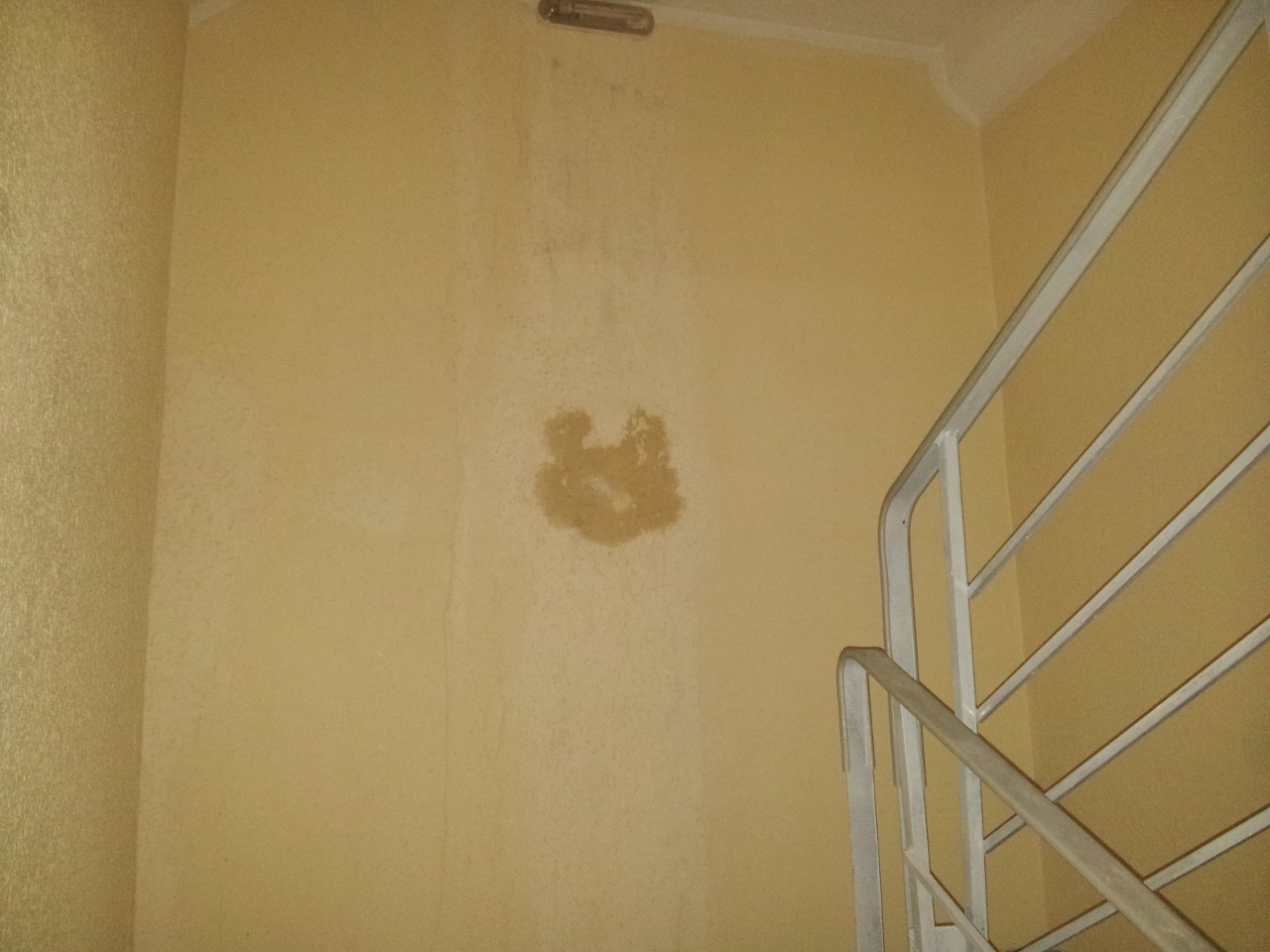 В 5ом корпусе, 1 подъезде обнаружил на лестничном марше хорошие подтёки. Заметил на ходу, не сразу, в районе 8 этажа, но распространяется он и ниже, и начинается - ещё выше.