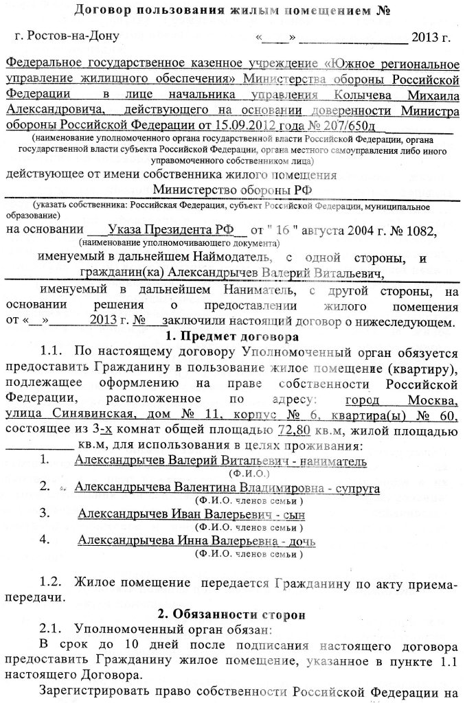"...Некоторым судебникам квартиры на ул. Ягодная достались с превышением нормы предоставления площади, поэтому им придется доплачивать в соответствии с приказом Министра обороны РФ №031, сумму из расчета стоимости квадратного метра указанного в договоре купли-продаже квартиры. На каждую квартиру свой договор и цены могут быть разными..."