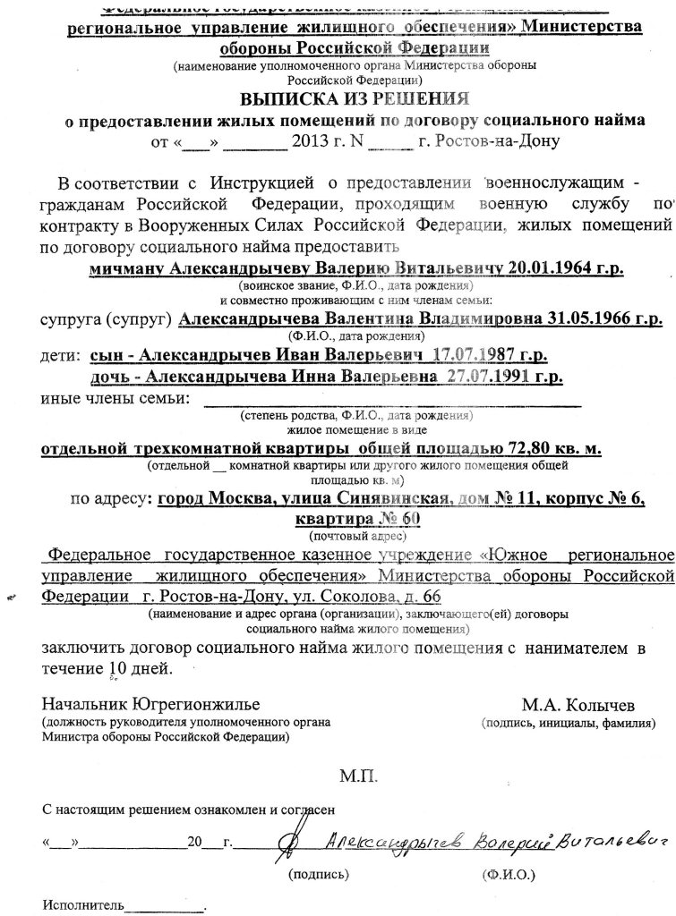 И это всего при одном предложении по ипмж!!Новые методы обеспечения жильем - уже в действии. Гринев (начальник 1 ТО на Садово Спасской) выдал мне бумагу с решением: обеспечение в Москве не представляется возможным, поэтому направить представление в Главное управление кадров на исключение из списков части. Скан выложил в ветке Садово-Спасское. Московской обл отдел (Садовая-Спасская) Западного РУЖО