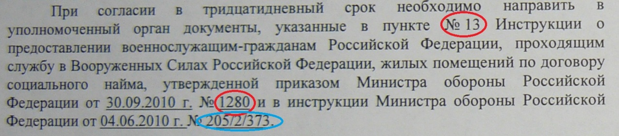 Не совсем так. В извещение написано п.13+ прил 5 205/2/373 представить в УПОЛНОМОЧЕННЫЙ ОРГАН. Т.е. передать представителю ДЖО или отправить, отвезти в Москву самому. После проверки правильности и законности - присылают разрешение на вселение. ИМХО все понятно.предоставить нужно в/сл только документы, согласно п.13 Приказа 1280