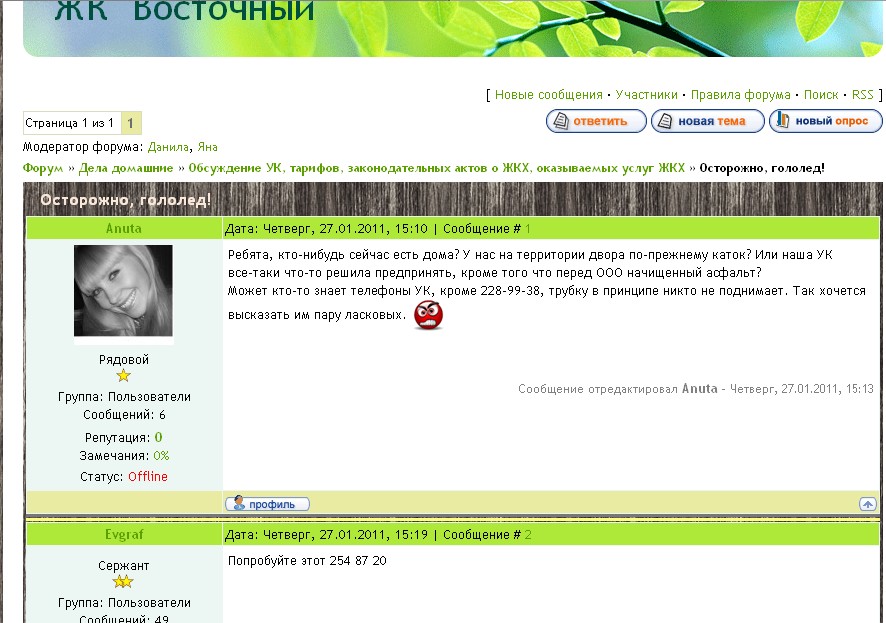 Позвони, дружище по тому номеру....и послушайте кто Вам ответит...."Семимильными шагами" идете, телефон УК был на указанном форуме.