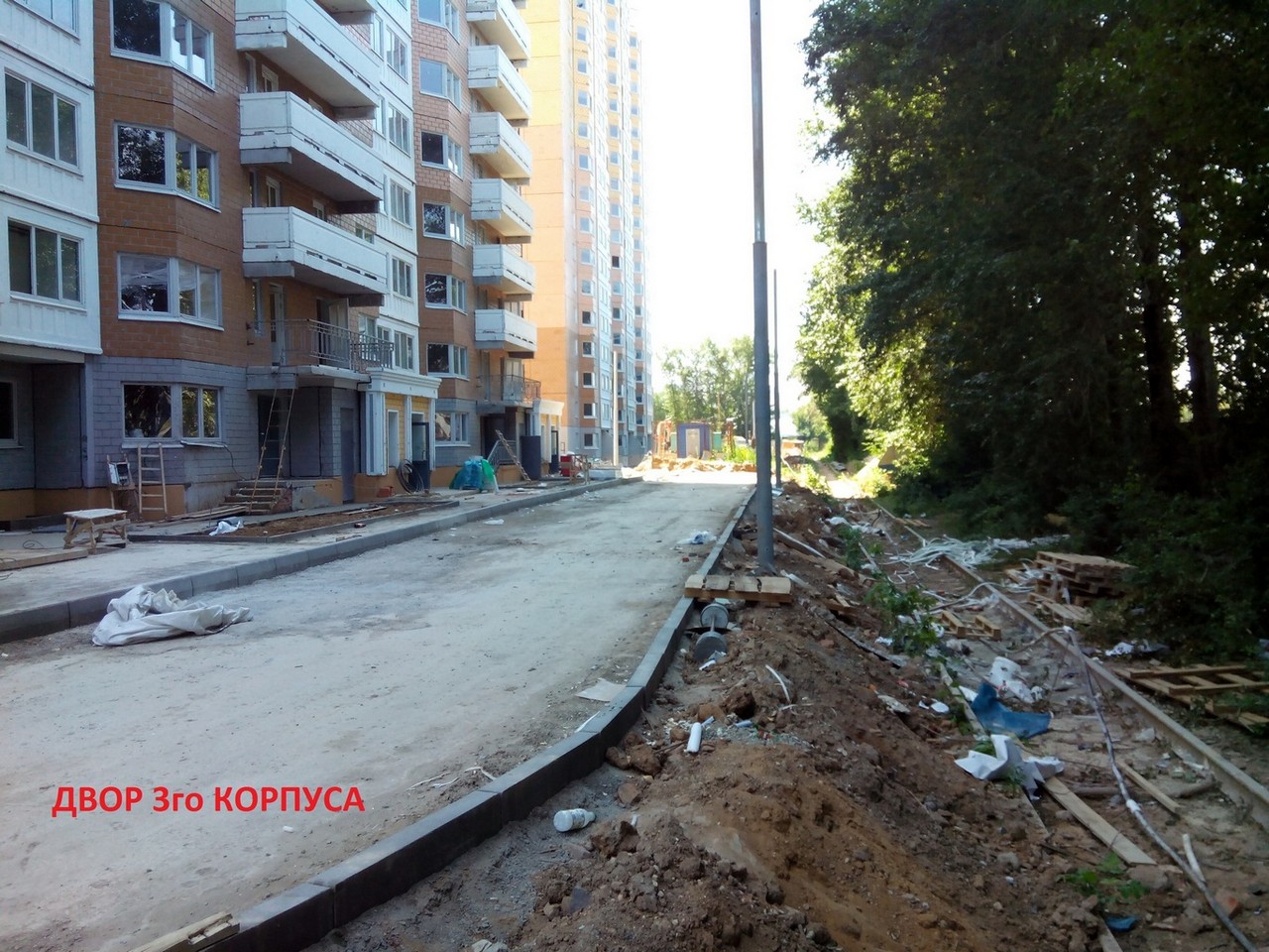 #7521Фото делал 12.07. В 3корпусе идёт отделка. Заглянул на первый этаж. Поклеены обои, местами линолеум лежит, сантехники нет. Выше не ходил. Движение в корпусе наблюдалось, правда показалось, что не очень много рабочихФото может кто нибудь выложить по третьему корпусу ? По описанию это корпус который построен из жадности, по принципу: Семь шапок из одной шкуры. Стоит на железной дороге впритык. За железной дорогой , прямо под окнами -хим комбинат по разделыванию химических отходов. Правда или нет непонятно. Но фото все тщательно скрывают...