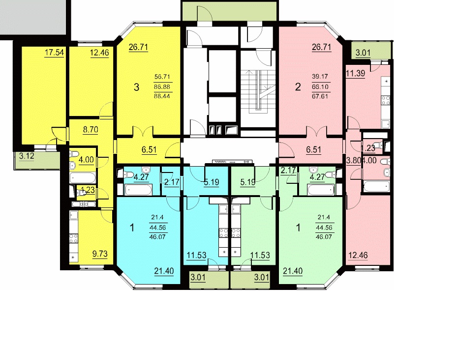 Планировка у СУ-155 стандартная для жилья эконом класса: 1, 2, 3-х комнатные квартиры, 4-х комнатных не предусмотрено, метраж 46, 67 и 88 кв.м соответственно