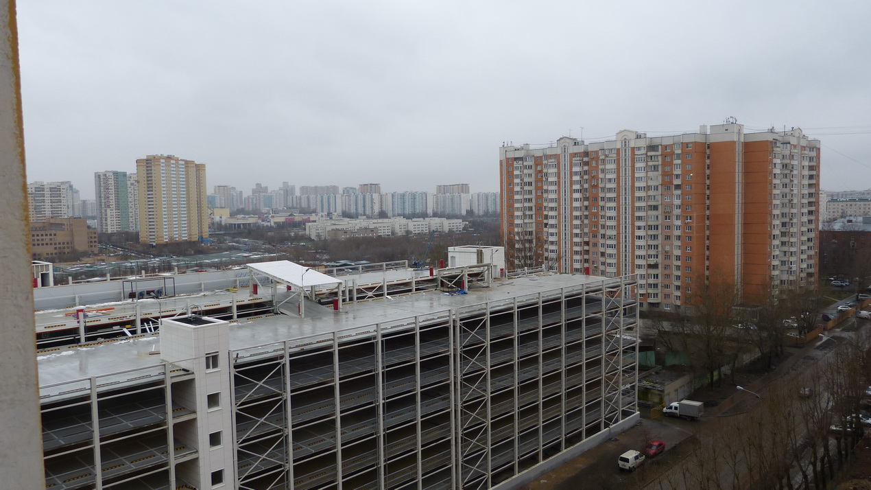 Окна кухни и комнаты у вас выходят на южную сторону. Из них открывается вид на многоярусную парковку и корпус 4.
