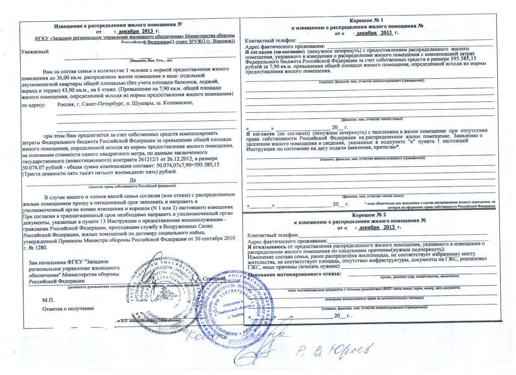 #851Если у вас ИПМЖ Воронеж, из очереди не имеют права выкидывать, скорей всего на тот момент когда вам предложили Краснодар, Воронеж не предлагали, просто ДЖО должно отчитаться перед президентом, что вам предлагали, а где, это уже другой вопрос. Моя версия может быть верна, если вы встали в очередь до 2012 г. По поводу писать заявление на согласие или отказ, много противоречивых мнений, тут я не подскажу.Всем доброго дня. Стою на постоянное жильё в г. Воронеж. С Нового Года названивают и предлагают приехать т.к. распределили жильё в г. Краснодар. На мои возражения, что я не выбирал Краснодар не реагируют. Несут всякую чушь,что в Воронеже нет "однушек"(состав семьи 1чел.),не положено и вообще это не они распределяют.