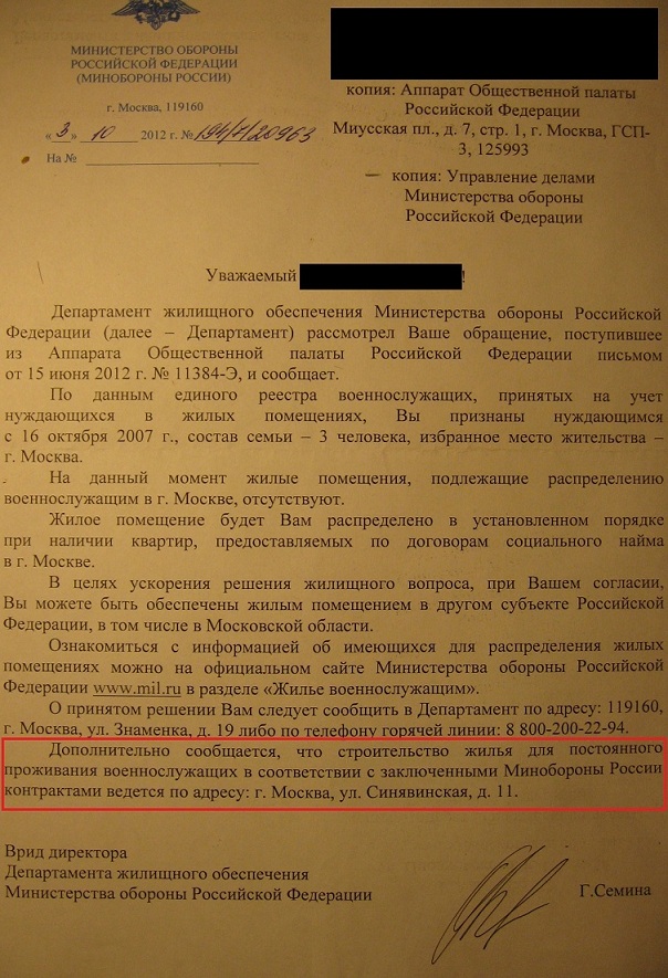 Министерство обороны России продолжает успешные операции информационного противоборства - но, к сожалению, не против боевиков, международных террористов и ВС Грузии - а против собственных офицеров! Не поддаваться! Двадцать лет без квартиры продержались - и еще два-три-четыре года продержимся...