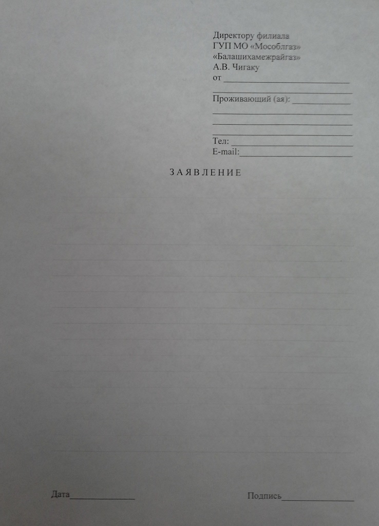 2. Едите в Балашиху на ул. Ленина 77. Заходите в первый корпус, у охранника спрашиваете о канцелярии. В Канцелярии вам дают заявление. Вы его заполняете в двух экземплярах (один себе) и ставите на входящий. В Заявлении надо указать адрес, куда присылать ответ (в шапке), адрес квартиры в Заре (где счётчик хотим менять). В тексте должно быть что-то типа такого: В квартире установлен счётчик газа Gallus 2002. Он не вписывается в габариты квартиры (можно ещё что-то типа того, что для оплаты применяются смарт карты, которые можно пополнить только в Салтыковке или в Балашихе, а это далеко