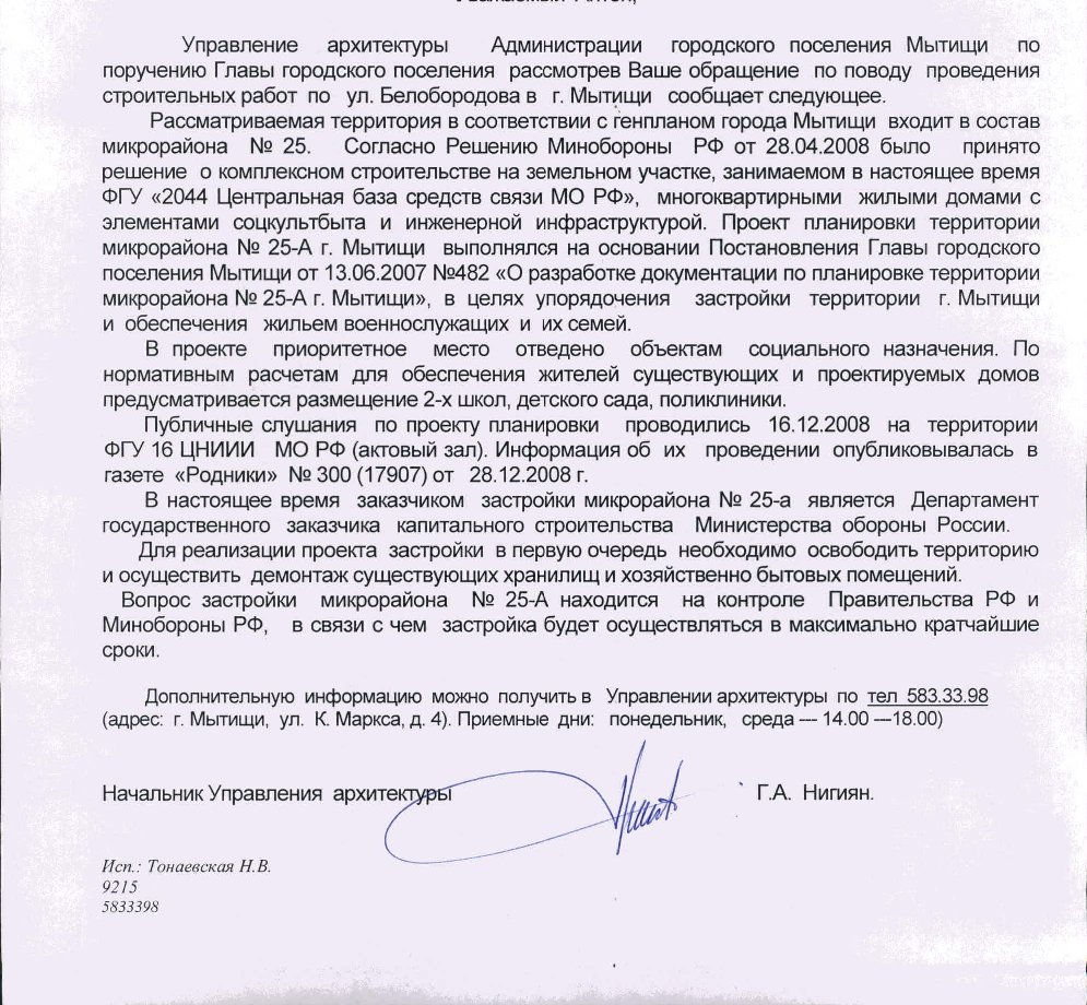 Достоверную!! Самую достовернейшую инфу по Мытищам мне на днях выдали по халявному телефону ДЖО! Какой-то Валерик КЛЯЛСЯ, БОЖИЛСЯ что и слыхом не слыхивал про строительство в этом городе, и по моему даже три раза поклонился перекрестившись при этом. На мой вопрос- зачем же ОГМО обмануло людей, что стройплощадка в ноябре уже расчищена- ответил что то нехорошее про ОГМО, и вроде опять поклонился... Вот такая инфа у меня ДОСТОВЕРНАЯ! А вот про "Питерскую контору" пжалыйста больше не напоминайте, в народе это словосочетание вызывает ассоциацию "ПОЛНАЯ ЖОПА" С уважением!