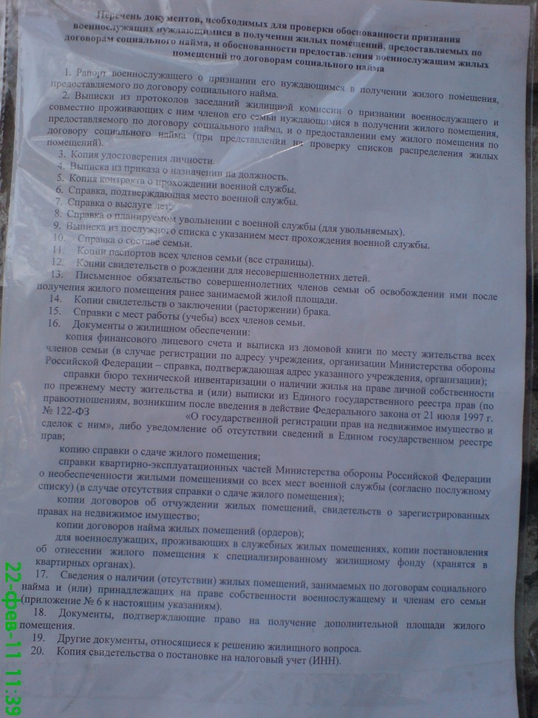 В понедельник ездил в ДЖО!!! Начитавшись историй на этом сайте и получив огромную(!) базу информации, я просто в растерянности был перед дверью тетешки Гупало И.Е..,т.к. развитие событий могло быть непредсказуемым. Хотел решить два вопроса: 1) В едином Рееестре дата моей постановки на учет стояла не 2005, а 2006 годом (т.е. один год был потерянным); и 2) Хотел выяснить возможность получения квартиры в Балашихе вместо призрачной квартиры в Москве! Дату постановки Инна Евгеньевна мне не поменяла ссылаясь на то, что ей такие данные прислали официальные власти моей воинской части (Главкомат ВМФ), а вот рапорт переписать на Балашиху предложила, уверяя меня в том, что именно на этот город и придет долгожданное "письмо счастья"! Переписал. Жду.