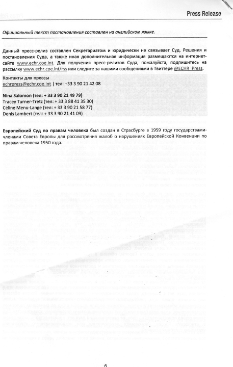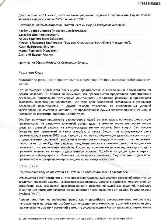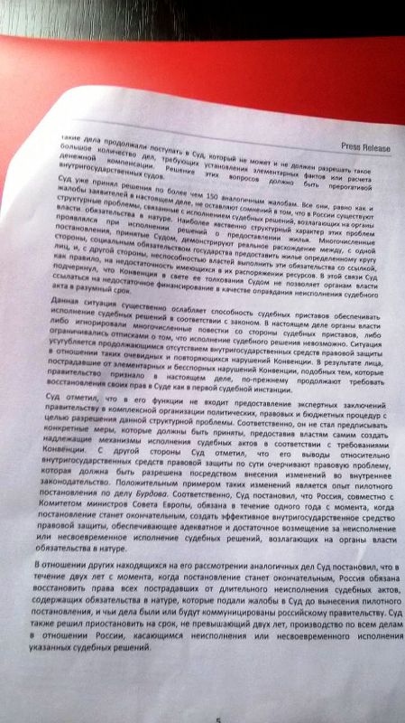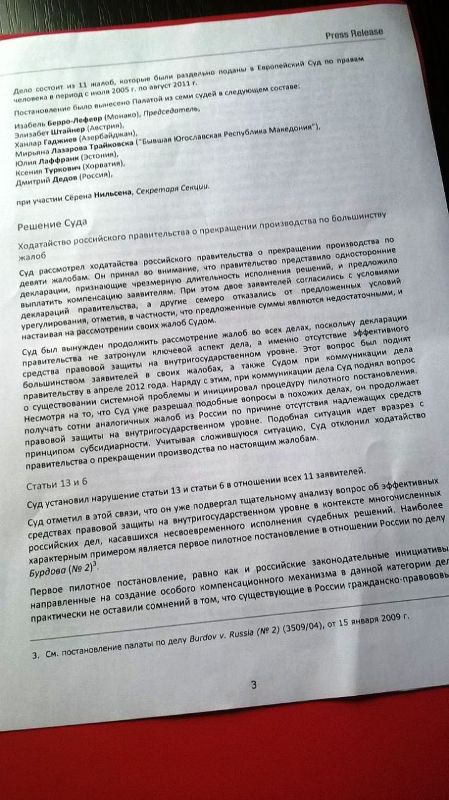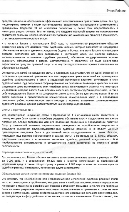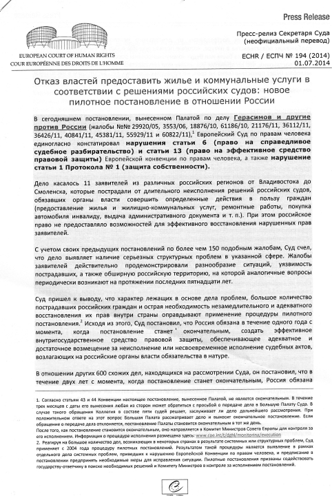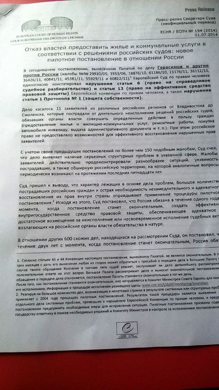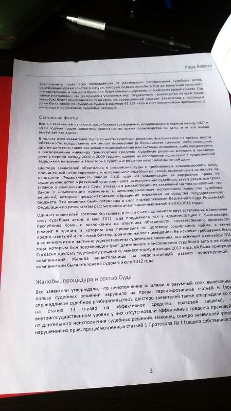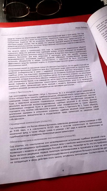 А пилотное постановление по делу Герасимова и других разослано нам, думаю, в качестве примера. Ну вот как то так. Надо делать полный перевод, тогда может будет что то более менее ясно.