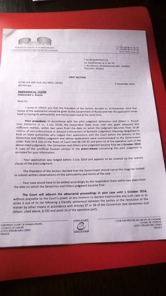 Кому еще такое пришло, отпишитесь. Я не понял, они дали два года Российским властям исполнить решения национальных судов, если те решение исполнят, тогда в ЕСПЧ рассматривать не будут?Выкладываю решение ЕСПЧ