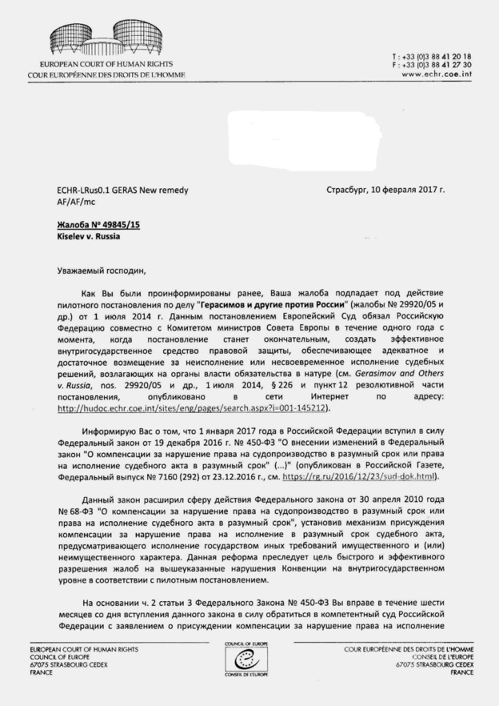 Если у Вас и после этого ничего не выйдет, тогда Вы можете написать в ЕСПЧ