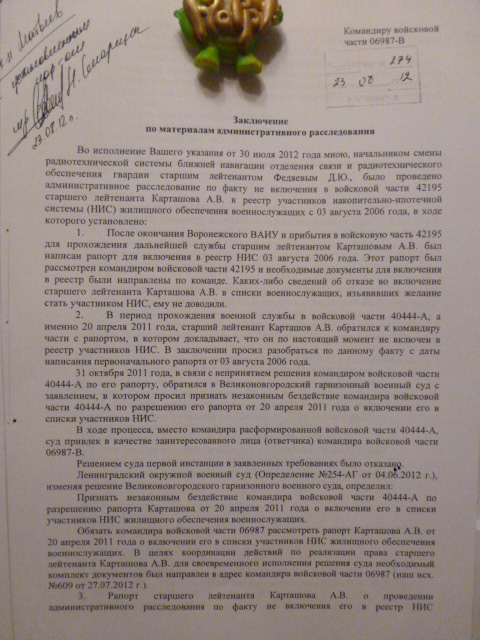 Параллельно так как путь от рапорта на расследование до того как командир соизволил провести его все таки.....я подал документы на признание нуждающимся в РУЖО. И получил отказ который основывается на том что мной в РУЖО не был представлен документ что я не НИС-овец.