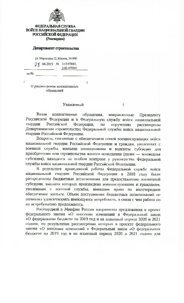#2464Просто Минфин в ответе пишет дословно:..... Сообщаем, что ФЗ от 29.11.18г.№459-ФЗ (название бюджет на 19,20,21г...) на 2019 год не предусмотрены бюджетные ассигнования на предоставление жилищной субсидии военнослужащим Росгвардии...." токая же почти хрень в 2018,2017 годах....один ответ минфина кстати в Ваш адрес.Дело в том, что деньги выделялись. .