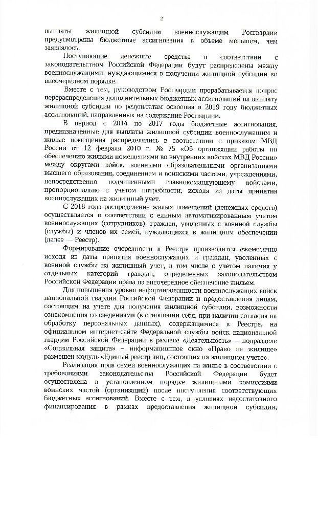 Почему в бюджете РФ уже 5 лет не планируются деньги для выполнения соц обязательств перед военнослужащими, предусмотренные действующими законами для обеспечения жильем в форме выплаты жилищной субсидии военнослужащим Росгвардии , хотя Д.А. Медведев заявил, что в бюджете 2019 предусмотрены деньги на выполнение всех соц гарантий государством . Деньги на обеспечение жильем военных ( сотрудников) созданной Вами Росгвардии в форме жилищной субсидии в бюджет не закладываются! И в действующем бюджете для Росгвардии не предусмотрены.