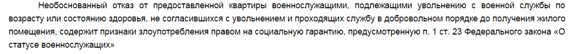 В случае отказа от предложенного жилья 30 суток - уже вторичный фактор, читайте весь абзац полностью, а не так, как хочется:QR_BBPOST Как я злоупотребляю правом, если на сбор документов по квартире и по ЖС дается 30 дней... я этот срок не нарушаю... и в законе не определено, до какого момента в/с может изменить решение перейти на ЖС...