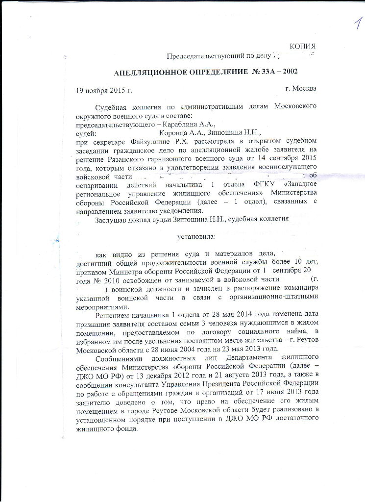так как я не обжаловал приказ командующего,а только приказ командир.QR_BBPOST Или просто был отменен приказ об исключении и все, а в мотивировочной части что то было написано про жилье?