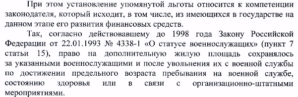 «Право на дополнительную жилую площадь сохраняется за указанными военнослужащими при зачислении в распоряжение и (или) увольнении с указанных должностей в связи с организационно-штатными мероприятиями, по достижении предельного возраста пребывания на военной службе или состоянию здоровья»