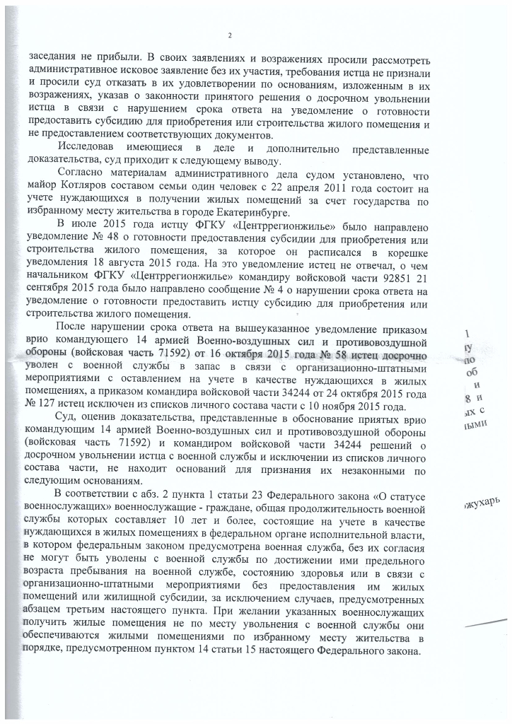 Без вариантов, сослуживец с адвокатом ходил, проиграл. А я когда в этом же суде пытался уведомление оспорить и признать право получение квартиры до увольнения не реализованным, понял что шансов у распоряженцев на Урале нет.QR_BBPOST Шансы есть, я думаю. Все же на заседании надо было участвовать.