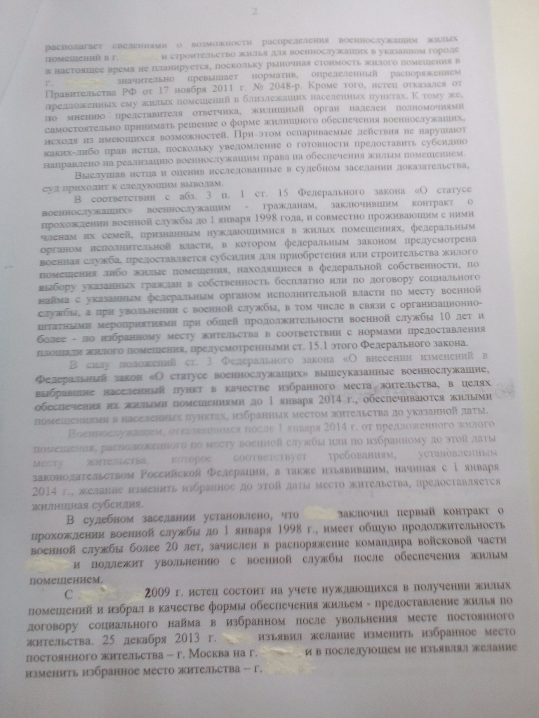 #5273[ref]kazan79[/ref], а почему вам и мне придёт повторное уведомление?вы тогда просто проиграете гарнизонный суд и на основании отказа от субсидии и проигрыша в гарнизонном суде вас начнут увольнять из ВС РФ. А меня начнут увольнять сразу после проигрыша в апелляции так как решение суда после апелляции вступит в законную силу.
