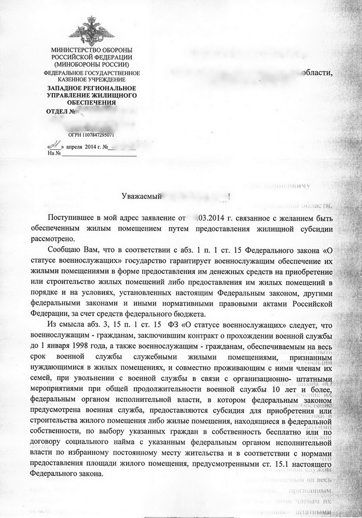 Доброе утро, уважаемые форумчане! Хочу спросить совета. Сегодня увидел у себя в личном кабинете информацию о распределении мне квартиры в городе Подольске на 4-х человек (туда и просил). ВОПРОС: Как грамотно мне сейчас можно отказаться от нее (форма рапорта) и изьявить желание получить ЖИЛИЩНУЮ СУБСИДИЮ? Каков будет порядок признания меня нуждающимся в ЖС (сбор каких документов) и что я могу потерять или приобрести (минусы и плюсы) в случае принятия решения о выплате мне ЖС? Вопрос для меня очень животрепещущий и актуальный, прошу совета...