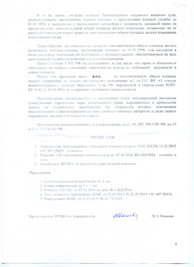 #5890Хозяин данных документов попросил меня их скинуть на всеобщее обозрение. Данные решения уже были на данной ветке. Однако меня попросили скинуть Кассационную жалобу ЗРУЖО в ВС. дело рассматривалось 15.09 и оно не в пользу данного военнослужащего. Но самое главное находится в самой кассации. Будет определение (решение) ВС хозяин сказал что скинет.