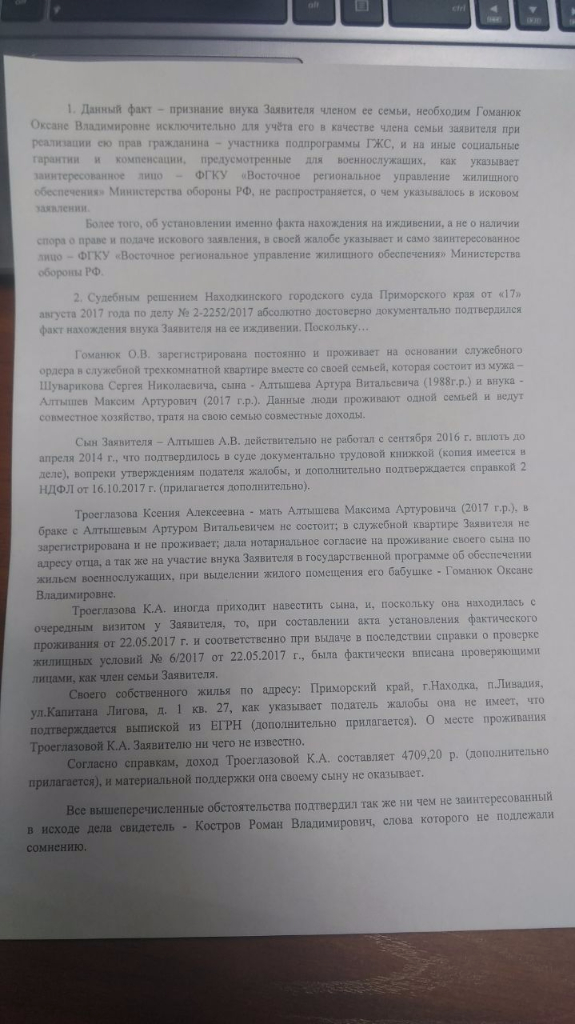 Расскажу всё попорядку!Родился внук приезжаю в Ружо своё,стою я уже с 14 года на ЖС.,спрашиваю что мне надо делать,отвечают привозите натариальное согласие матери что она согласна ,что внук проживает совместно с отцом ,и решение суда о признании юридического факта членом семьи!Все с этого начилось!Подаю в суд,решение суда вступает в силу,отвожу всё в Ружо они всё принимают,а потом приходят возражения от МО и Ружо ,что не согласны с решением!Мы тоже пишем возражения,и дело передают в краевой суд,где там мы проигрываем судьи повернули в другую сторону процесс,что я хочу признать на иждивении ,соц.гарантии,не рассмотрели мое дело такое ощущение вообще!Теперь надзор!