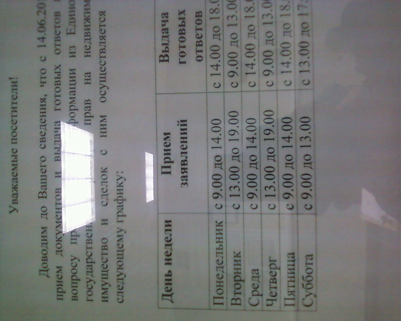 Сегодня был в Росреестре, обрадовали существенно--осталось 6(!) регионов с 3 декабря....., обещала через месяц. Порадовало что пусто было: только я и мой Росреестр! Да кстати если еще кому то актуально расписание работы с физическими лицами этой организации, а то я опоздал на 20 мин, так еле уговорил пообщаться.