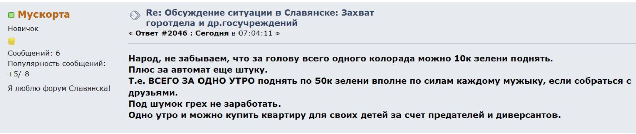 Только что корреспондент вестей по тлф - в самом Славянске началась интенсивная стрельба, около здания штаба самообороны. Снайперы не сидят без дела - убит командир одного из отрядов.