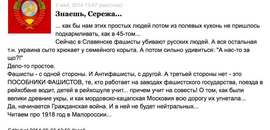 - Он четко разделил продажную, мазепинствующую украинскую псевдоэлиту и украинский народ, как часть Русского мира.