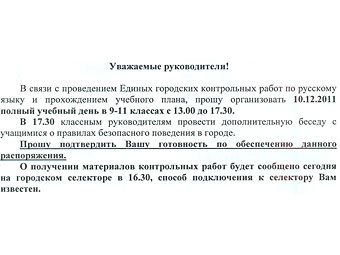 Информация к размышлению. Сегодня в школах Москвы срочно устроены "пробные ЕГЭ" для учащихся 9-11 классов. Начало "экзамена "в 15 (?!) часов. Причем, в графике пробных ЕГЭ, который школы получили ещё в сентябре, такой даты не было.