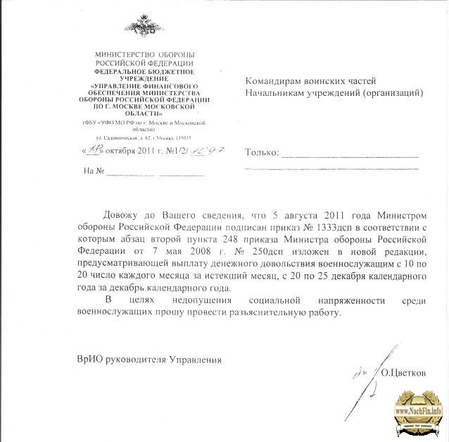 Там написано под роспись..... Но у нас так сказали на словах и всё.......... Может до начальников доводили под роспись....http://www.voen-pravo.ru/images/stories/3205624.jpg